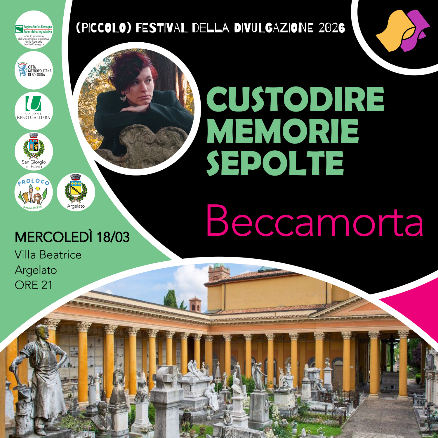 Nell'ambito del (Piccolo) Festival della divulgazione, l' appuntamento con "Custodire memorie sepolte - Arte nel trapasso" è mercoledì 18 marzo alle ore 21.00 a Villa Beatrice.